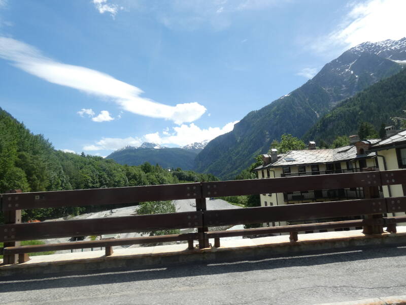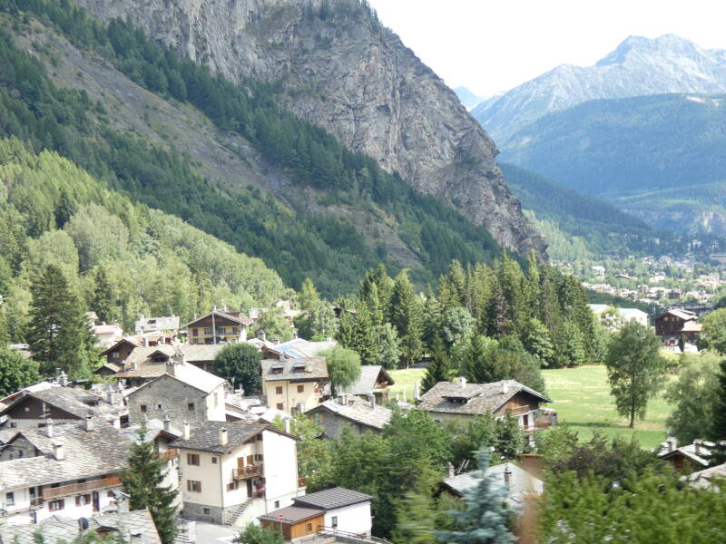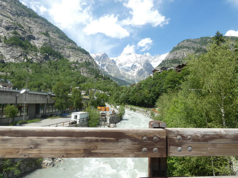 Courmayeur s’étend au pied du massif du Mont Blanc, dans un amphithéâtre verdoyant entouré de forêts de conifères, de montagnes et de glaciers.
