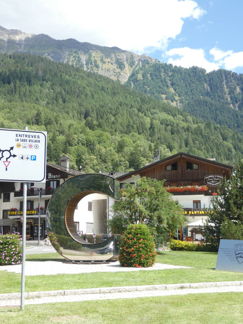 Sa surface miroir reflète en journée la chaîne du Mont-Blanc qui entoure notre village, tandis que la nuit, elle est illuminée par de fines lumières LED soulignant son contour.