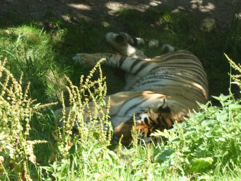 Mangu, notre mâle, est âgé de 16 ans, un âge avancé puisque le tigre, en milieu naturel, vit entre 10 et 15 ans.