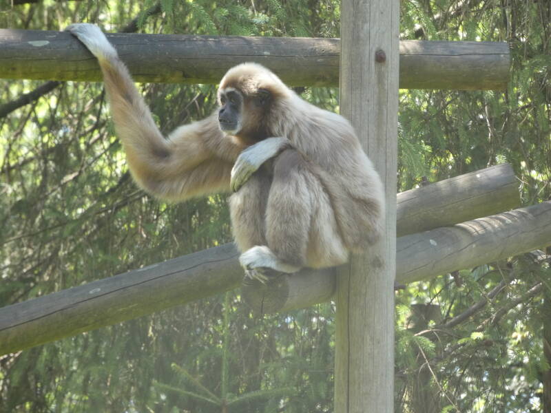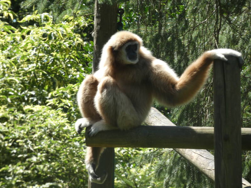 Le gibbon est un singe arboricole. Il descend rarement sur terre mais, lorsque cela lui arrive, il marche avec ses bras repliés au dessus de la tête, sans quoi il serait obligé des les laisser traîner par terre !