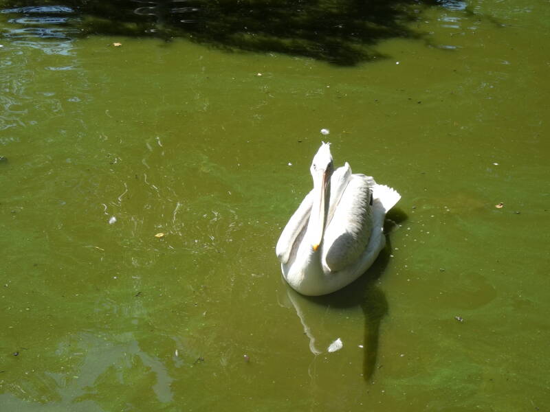 Le pélican frisé est menacé par la pollution de l’eau, la collision avec les lignes électriques aériennes et la surexploitation des stocks de poissons.