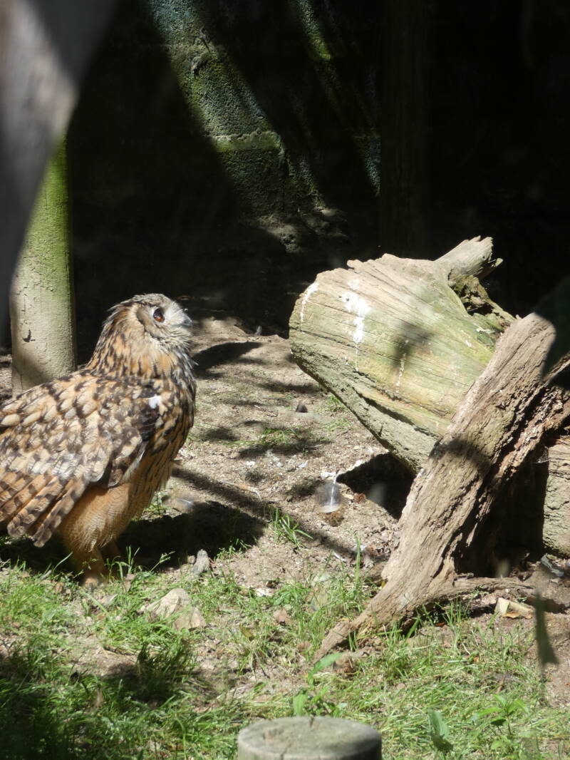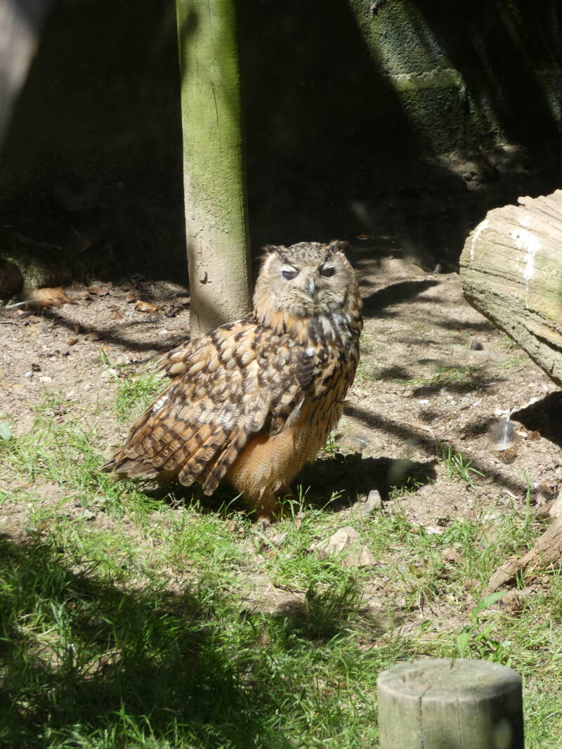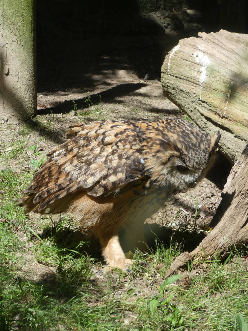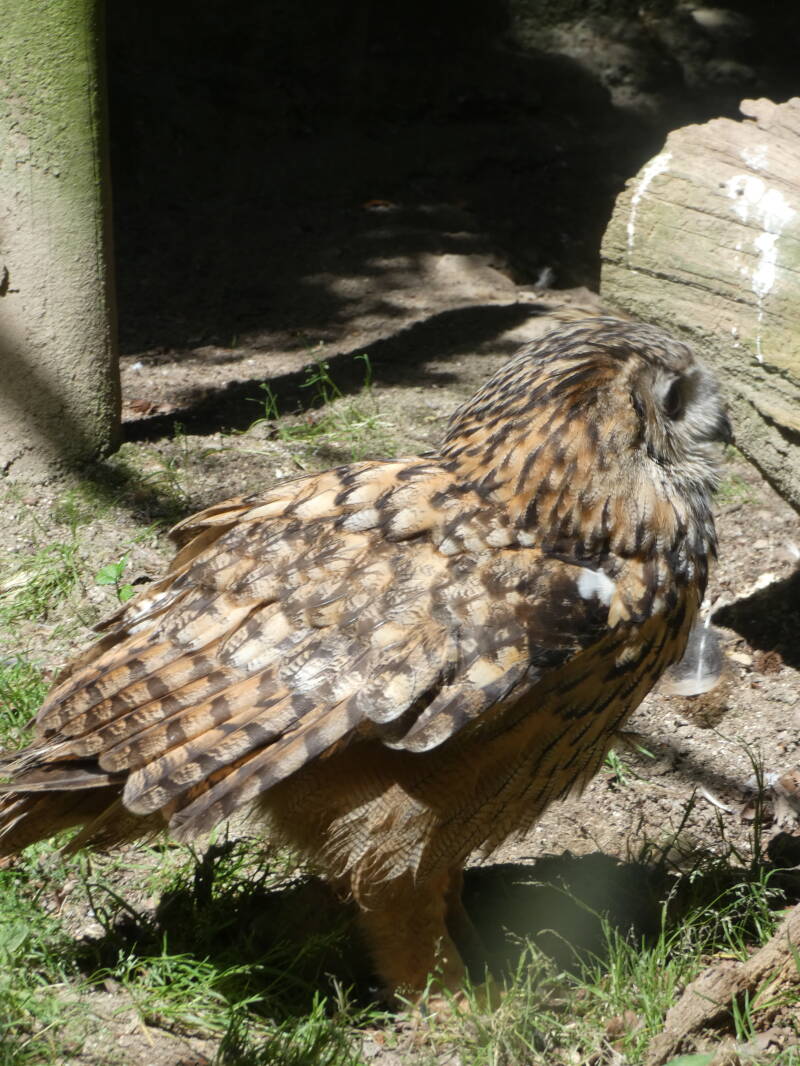 Le hibou grand duc est le plus grand rapace nocturne d’Europe. Lorsqu’il déploie ses ailes, il peut atteindre une envergure de 1.80m. Comme tous les hiboux, il arbore des aigrettes sur les côtés de sa tête. Ce sont ces “plumeaux” qui différencient les hiboux des chouettes. Les aigrettes ne jouent aucun rôle auditif.