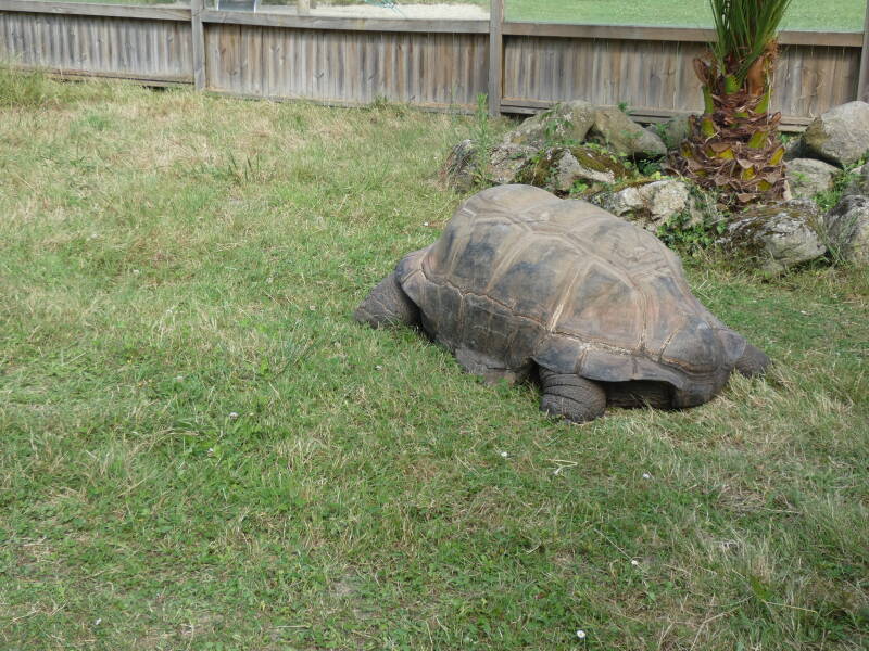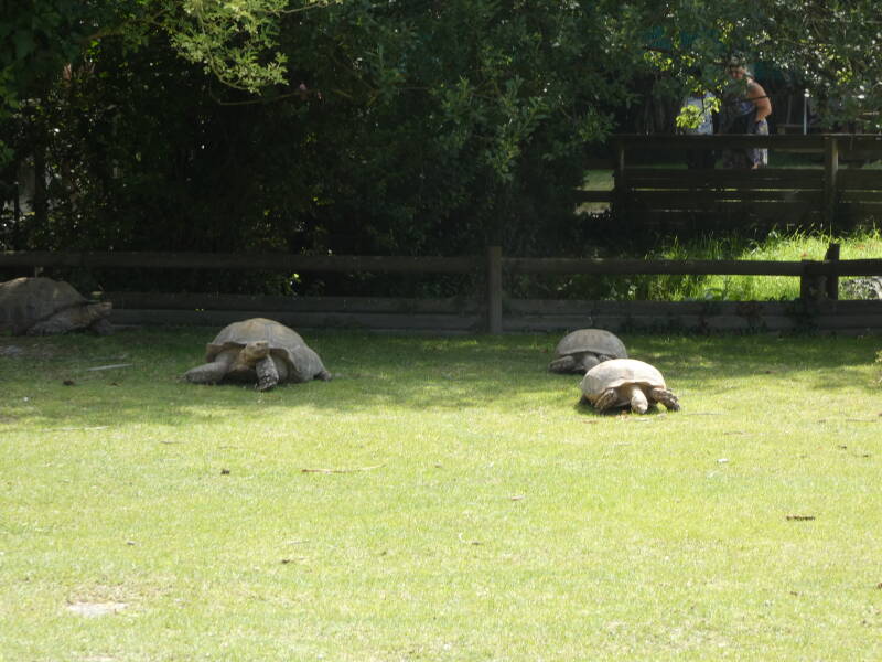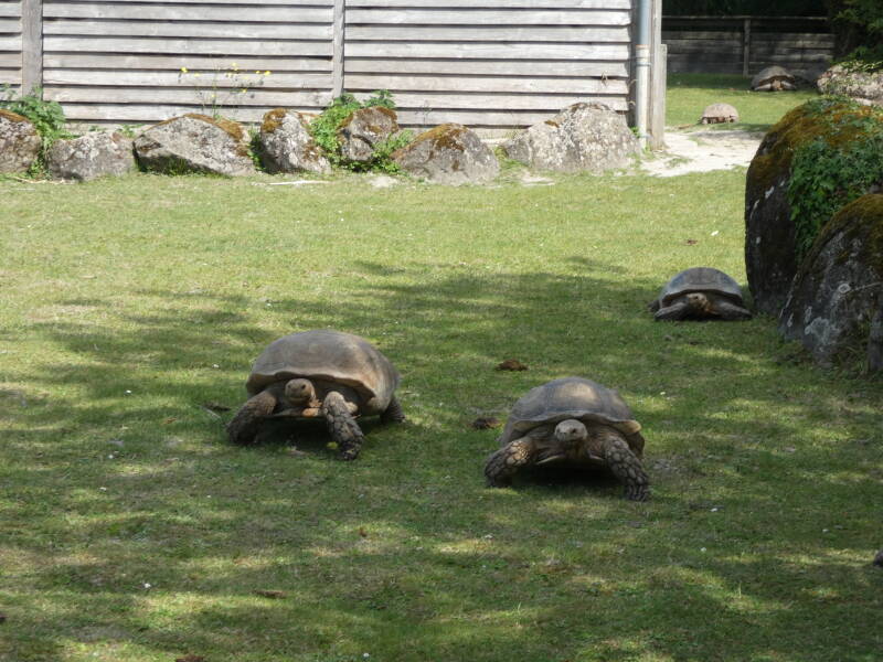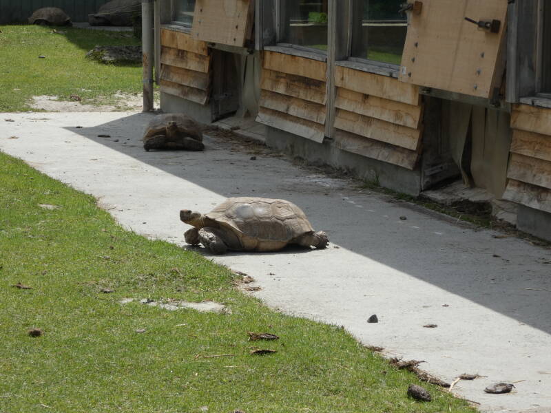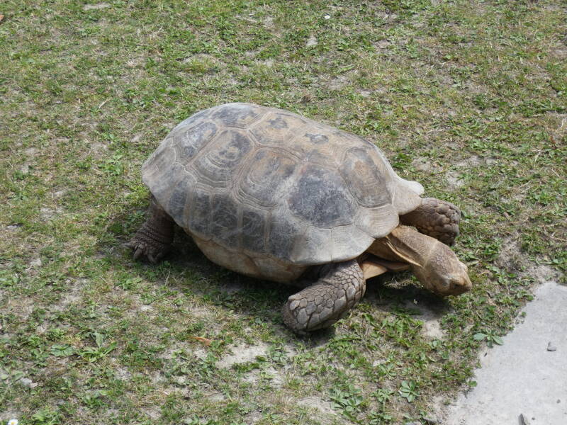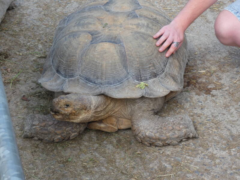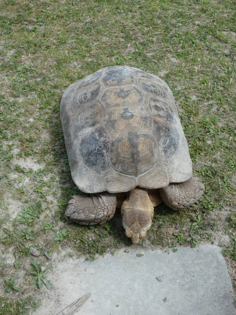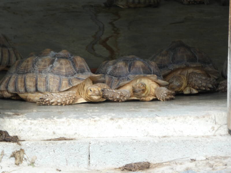 Dans cette partie du parc zoologique, un espace aménagé permet de caresser des tortues sillonnées, la plus grande espèce de tortue d’Afrique et la troisième plus grande du monde après les tortues géantes des Galápagos et les tortues géantes des Seychelles.
