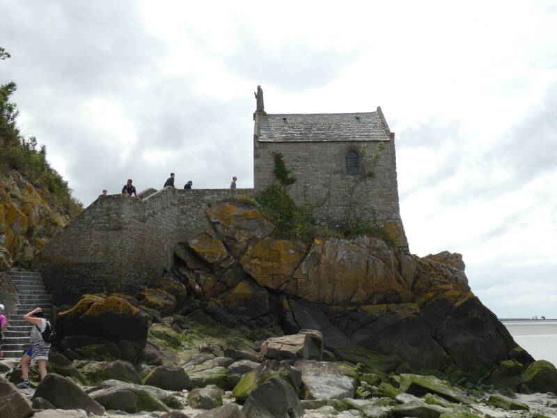 tire son nom d'un îlot rocheux dédié à saint Michel où s'élève aujourd'hui l'abbaye du mont Saint-Michel.