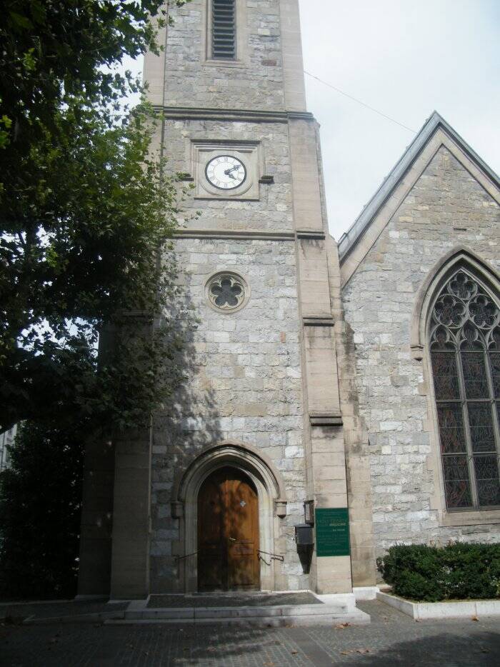 En 1846, un groupe de résidants anglais lance une souscription à Genève et en Angleterre pour construire une église qui serait propre à la communauté et requiert auprès du Conseil d'Etat l'autorisation d'acquérir un terrain pour l'y construire. Ce n'est pas une époque propice, puisque les révolutions de 1848 vont plonger l'Europe dans le chaos. En 1850, cependant, l'autorisation et la concession d'un terrain de la part du canton de Genève sont acquises et la construction débute en mai 1851. La première pierre est posée le 1er octobre de la même année et l'église anglicane (Holy Trinity Church) est consacrée le 30 août 1853 par l'évêque de Winchester.