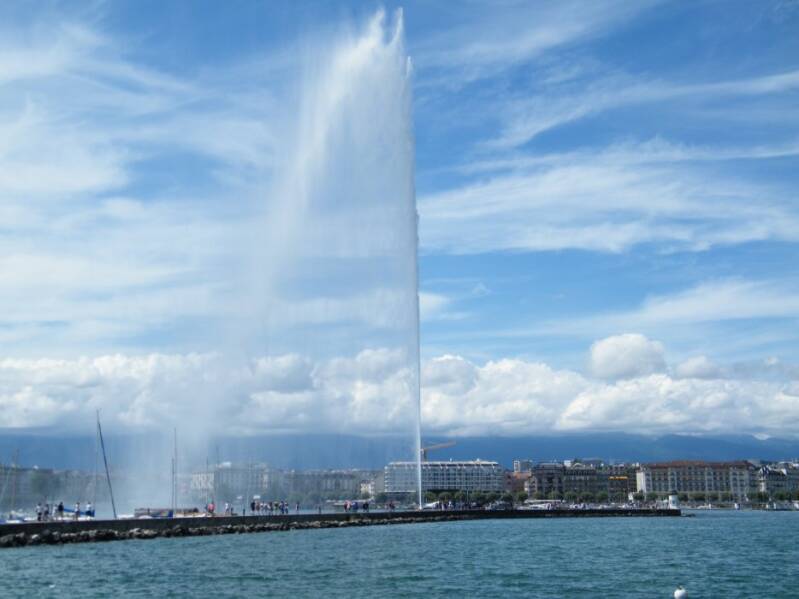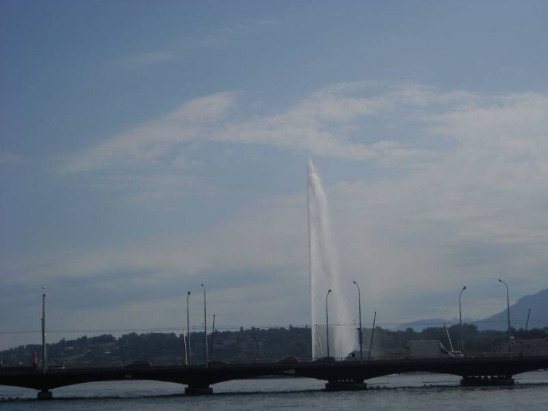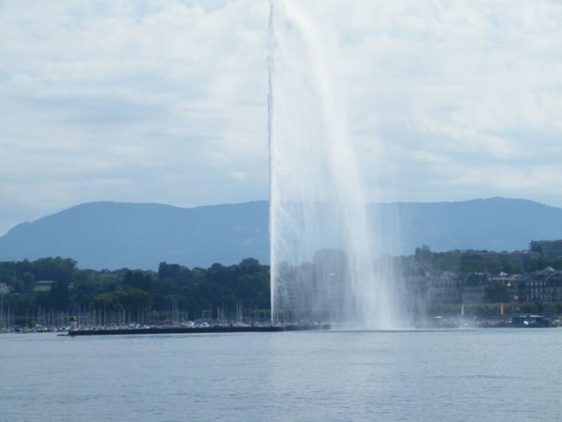 Le jet d'eau, haut de 140 mètres, est l'emblème de la ville de Genève