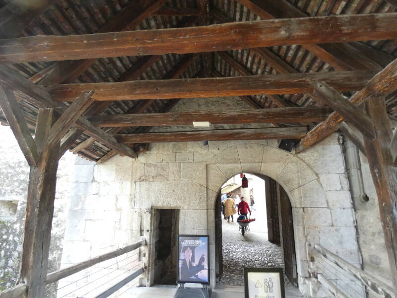 Situés à l’extrémité de la prison (salle n°9), ces tavillons et planchettes sont retenus dans les voûtes gothiques du XIIIe siècle. Ils faisaient partie de l’ancien coffrage disposé en prévision de la construction des voûtains – entre les croisées d’ogives – et servaient à contenir le mortier de liaison entre les blocs avant son durcissement.