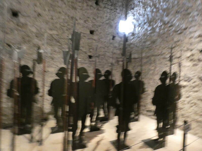 Deux étages du donjon sont dévolus à l’armement du Moyen Âge au XVIIe siècle – épées, masses, arquebuses et hallebardes – et la tour de défense aux armures, dont une cotte de mailles.